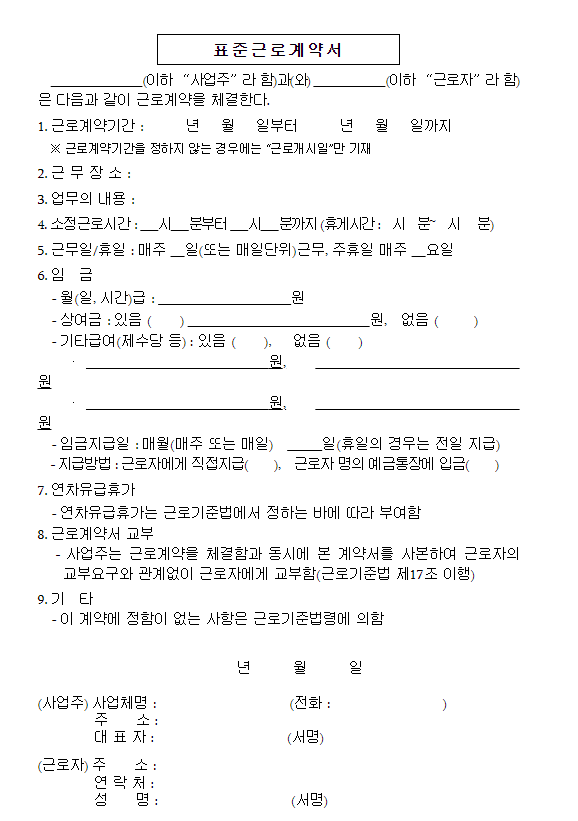 - 표준근로계약서