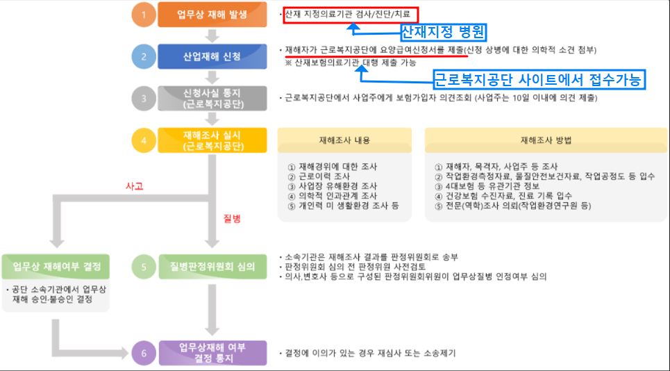 - 심사 및 승인 : 근로복지공단에서 심사를 통해 산재 여부를 결정.