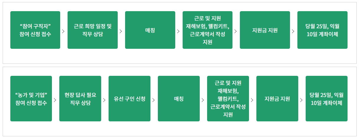 | 신청대상 | 참여 구직자 | 농가 | ||
