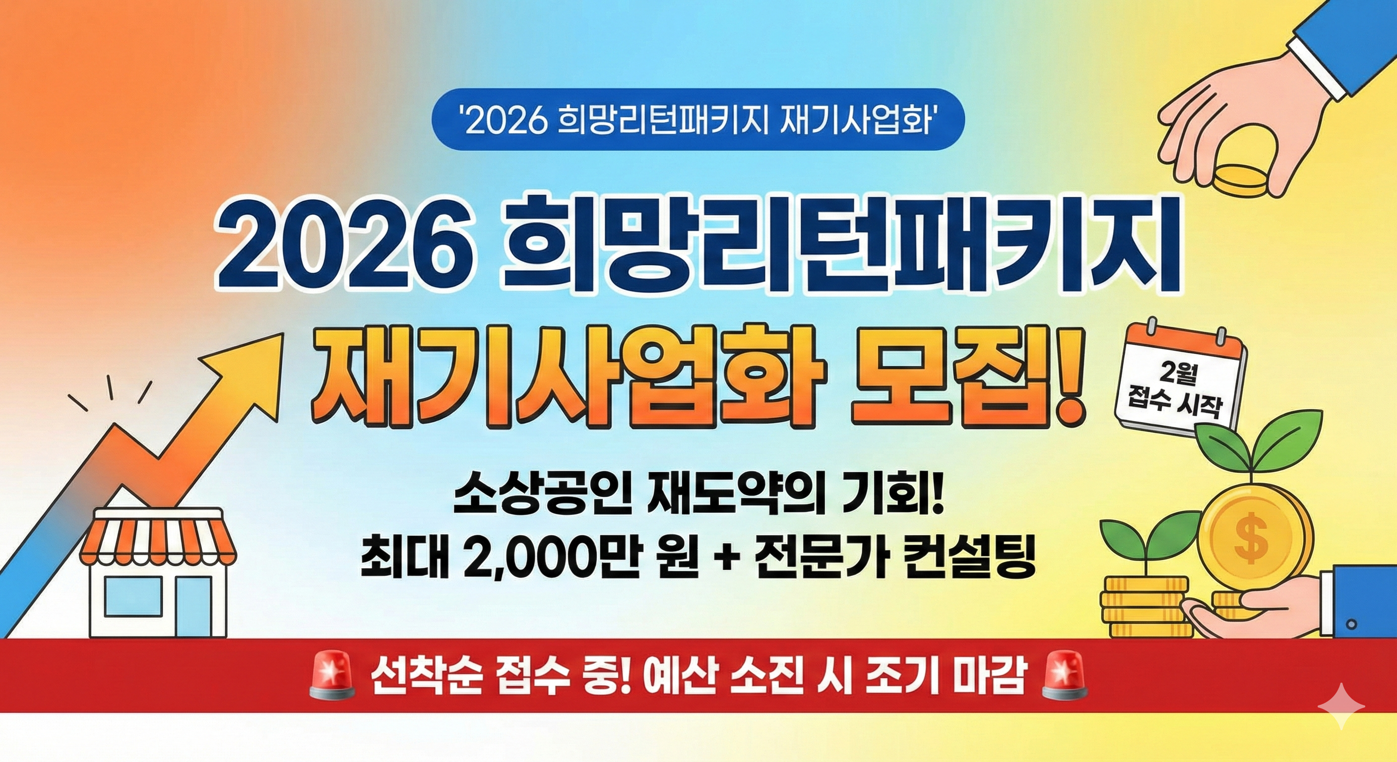2026년 새해가 밝고 설 연휴가 지나자마자 소상공인분들이 기다리시던 굵직한 공고가 떴습니다. 바로 중소벤처기업부와 소상공인시장진흥공단이 주관하는 '2026년 희망리턴패키지 재기사업화' 모집 소식입니다.